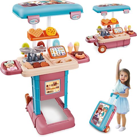 Pretend Play Vorschule Supermarkt Spiel Koffer Tisch Pull Rod Box Set 3-in-1 Food Dessert Girl Spielzeug für Kinder