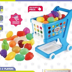 Shopping Cart with Food Grocery Store Pretend Play Kitchen Accessories Learning Toys Gift for Toddler